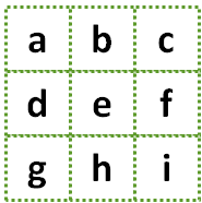 Poiché non conosciamo l’ordine dei numeri da 1 a 9 che riempiono correttamente il quadrato magico 3×3, sostituiamo le variabili a-i nella griglia che lo forma: