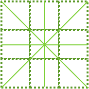 Osservando un quadrato magico vuoto 3×3, si può vedere che la casella centrale occupa una riga, una colonna e due diagonali.