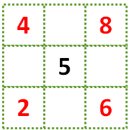 Posizionando, in questo caso, il 4 in alto a sinistra, l’unico numero da aggiungere per ottenere la somma di 15 è il 6
